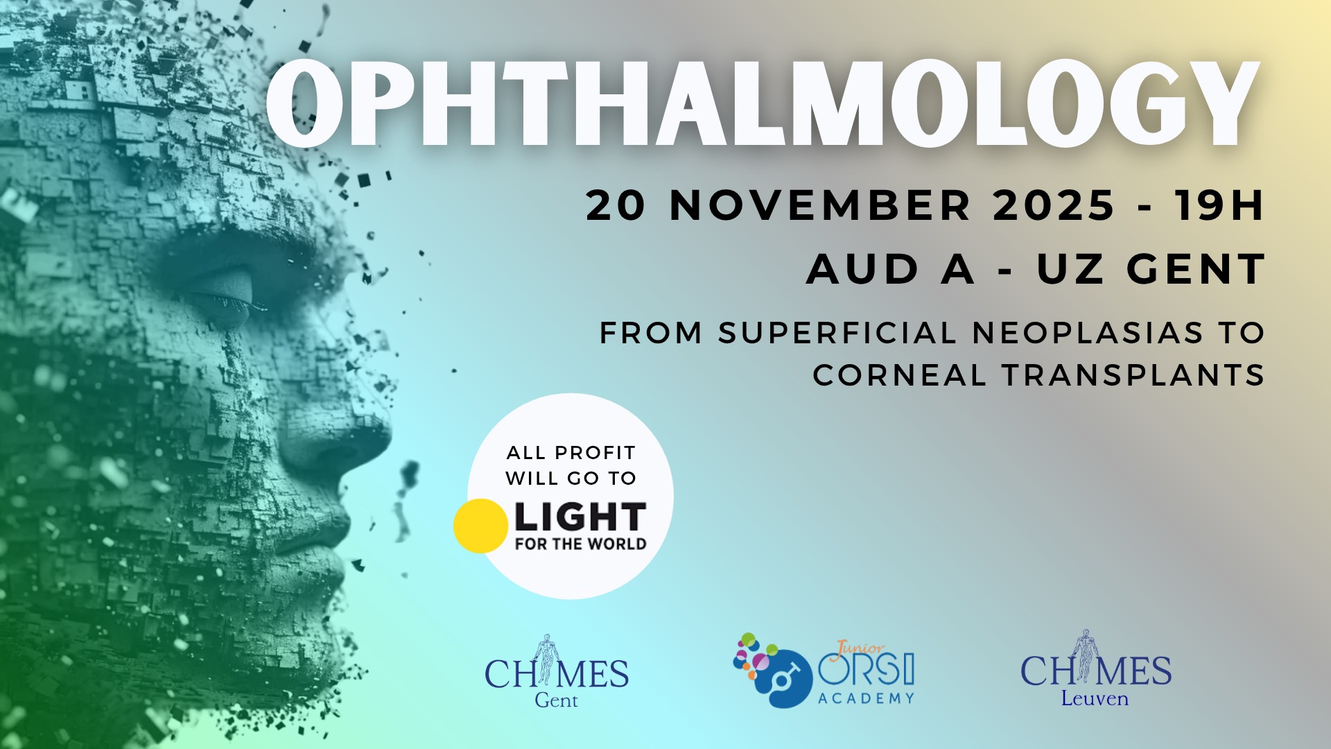 Graag nodigen we jullie uit voor de lezing “Oogchirurgie: van oppervlakkige neoplasieën tot corneatransplantaties”, gegeven door Dr. Roels. Na een korte introductie zal Dr. Roels ingaan op de chirurgische behandeling van benigne en maligne neoplasieën van het oogoppervlak. Vervolgens bespreekt hij de recente evoluties binnen de corneatransplantatiechirurgie, en sluit hij af met een overzicht van de traumatologische aspecten, waarbij vaak gecombineerde chirurgische technieken vereist zijn.